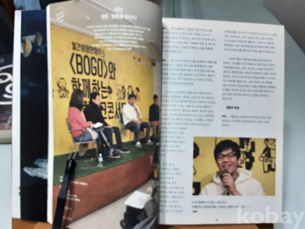 1. 우리만화연대와 휴머니스트가 합작해 2014년 창간한 어른을 위한 만화잡지입니다.사회적 이슈와 탄탄한 서사를 다룬 무크지 형태로, “보고(bogo)”라는 이름으로 윤태호, 유승하 등 유명 작가들이 참여해서 새로운 한국 만화의 가능성 시도.