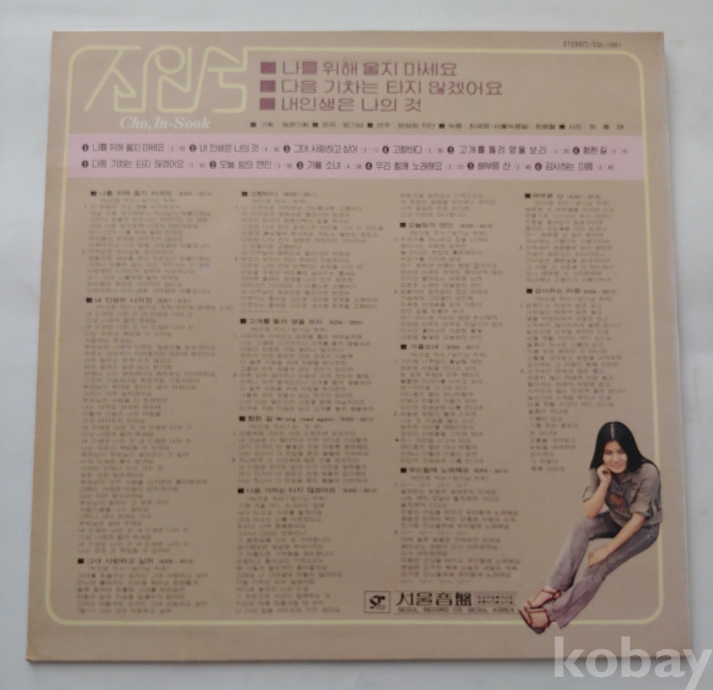 조인숙Lp/나를 위해 울지마세요,내 인생은 나의것