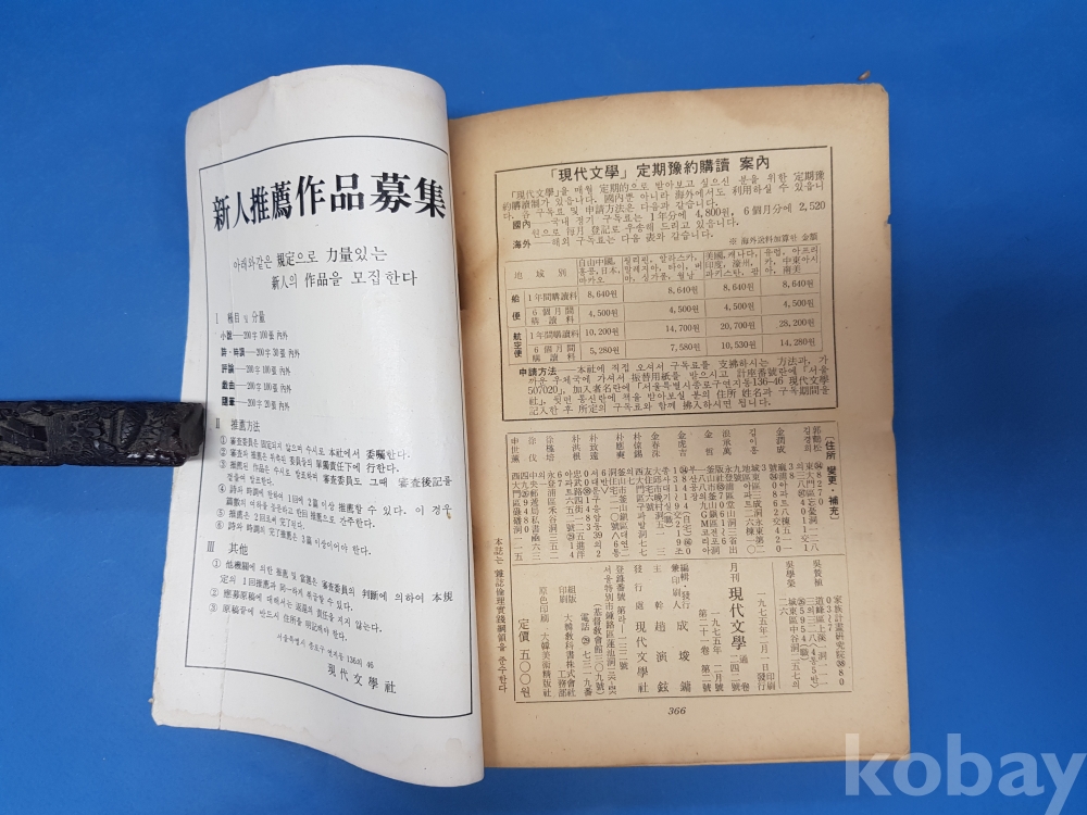 ▶ 朴斗鎭의 글 “水石列傳(續)Ⅶ”이 실린 現代文學 1975년 2월호, 월간 현대문학,366쪽