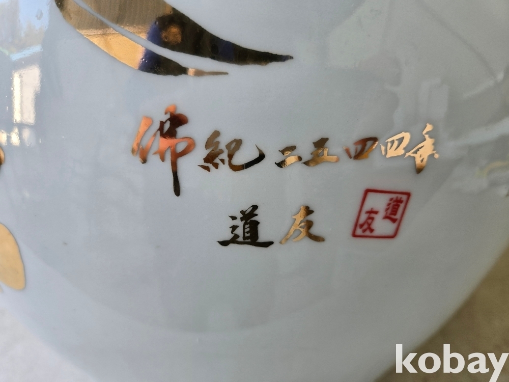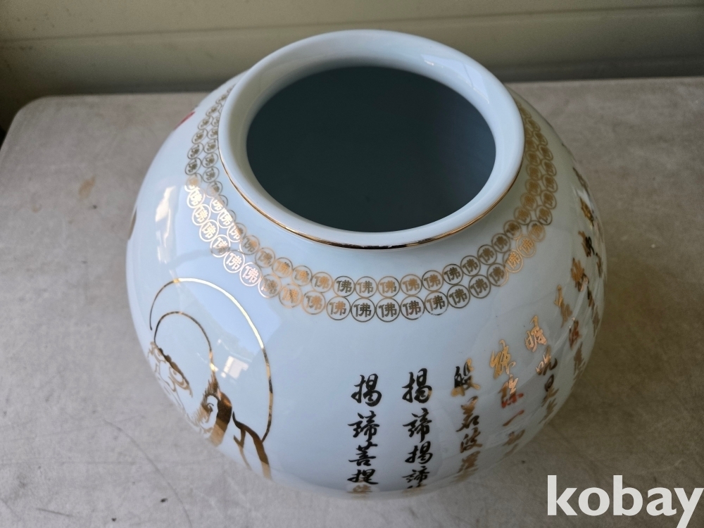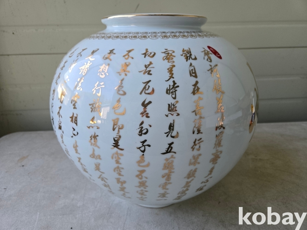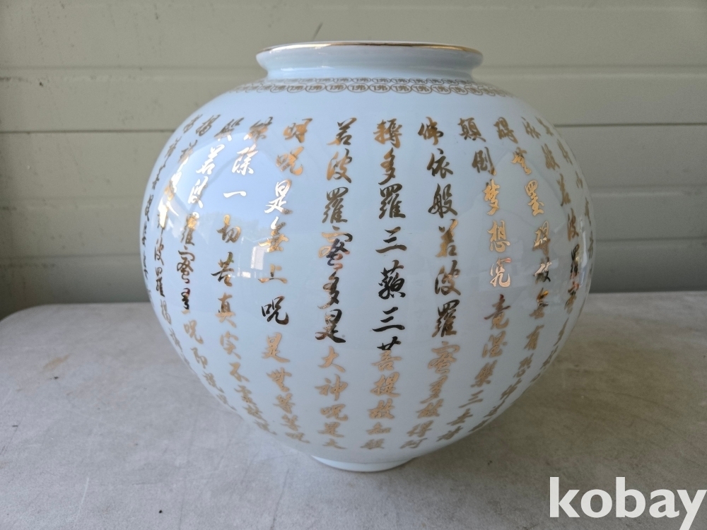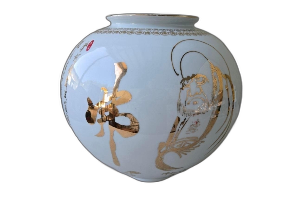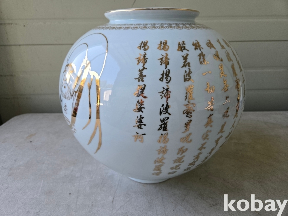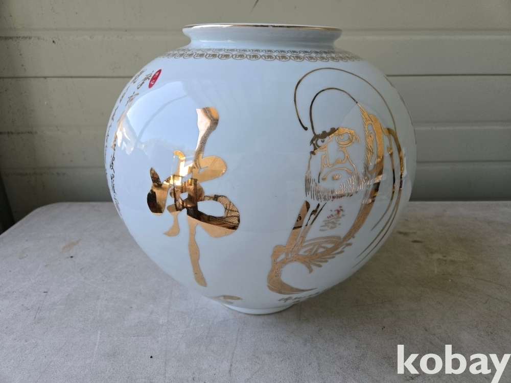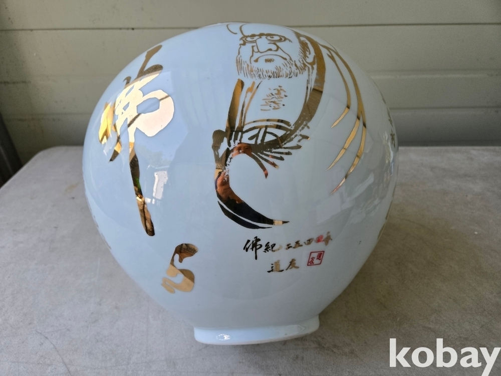금분으로 달마와 불경 글씨가 있는 달 도자기 입니다.