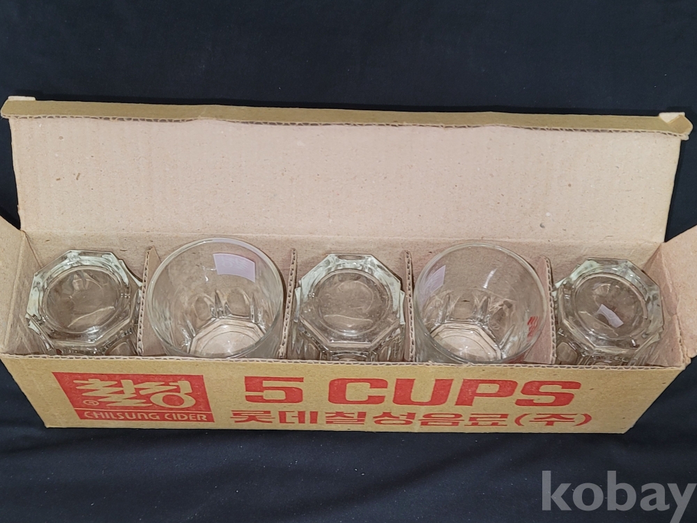 빈티지 롯데칠성음료 칠성사이다 유리컵 5개 세트입니다.