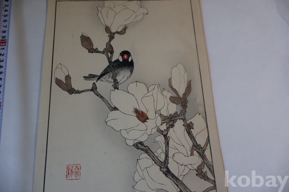 1930 대 목판화 새 임니다 아름다운 디자인 구도 섬세 함을 가진 명화 임니다 화가의 낙관이 보임니다