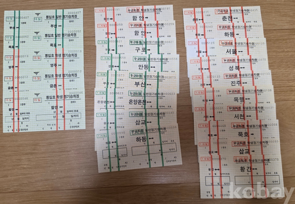 통일호 및 무궁화호 비둘기호 에드몬슨 승차권 및 정기권 판매합니다