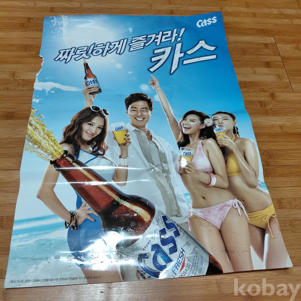 짜릿하게 즐겨라 카스맥주 연예인 광고모델 광고 포스터 테이프 자욱훼손된곳있음 사진참고 예민한 분들입찰 정중하게 사양 부탁드립니다