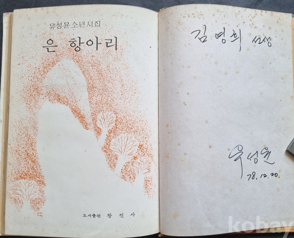 작가 친필 사인 및 증정본: 속표지에 "김영희 선생"에게 증정한 기록과 함께