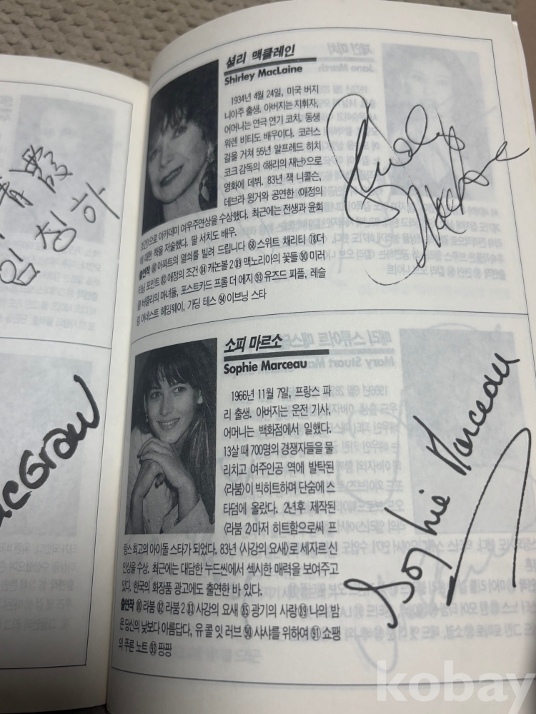 ★★(희귀자료) 1994년 WHO'S WHO -스타 대사전 100명의 사인있음 (브룩쉴즈,소피마르소,오드리헵번,장만옥,마이클잭슨등~)유명스타