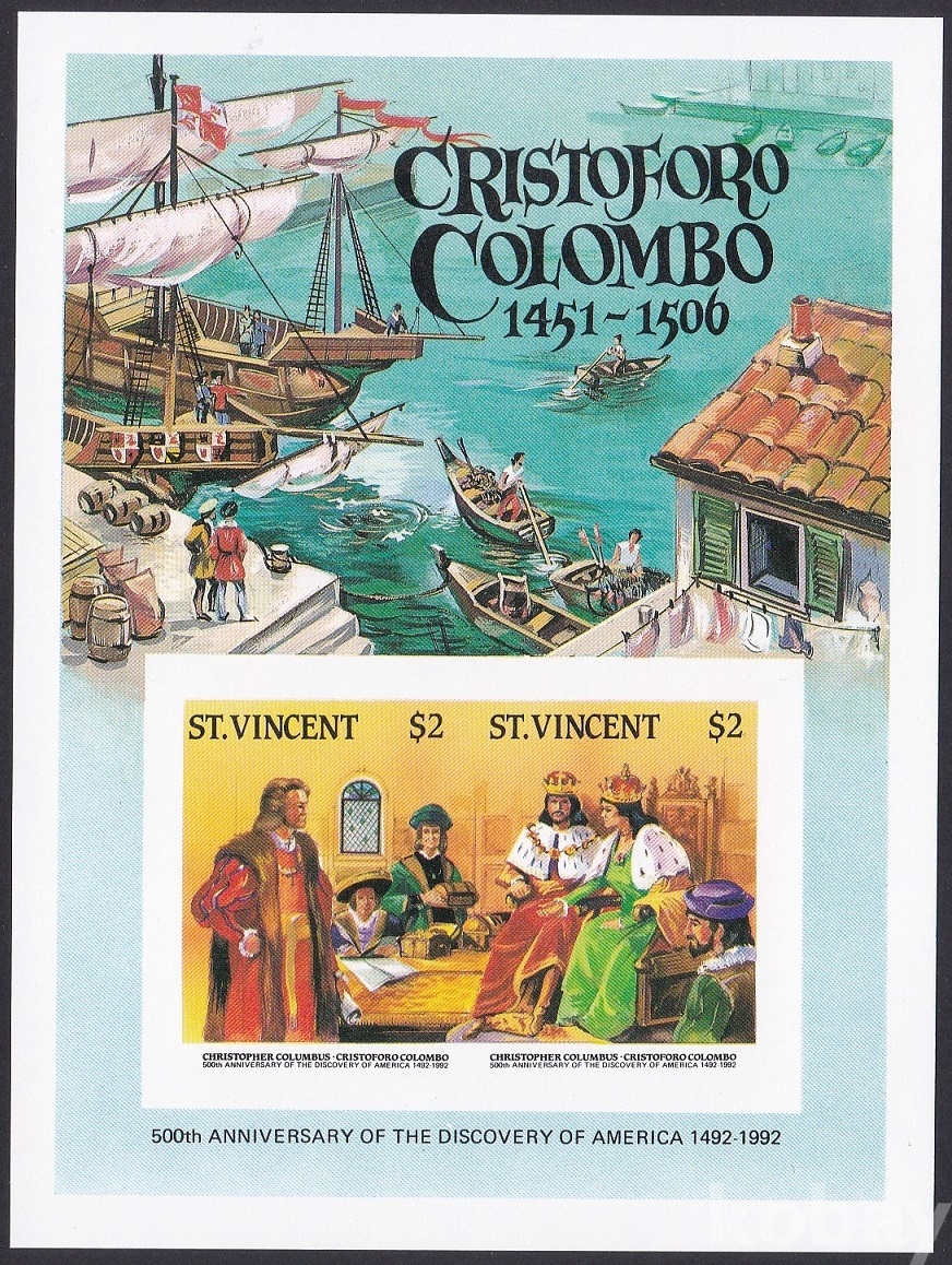 (하늘천) 세인트 빈센트 Sc937 미대륙 발견 500주년, 스페인 법원, 페르디난드, 이사벨라여왕, 무공