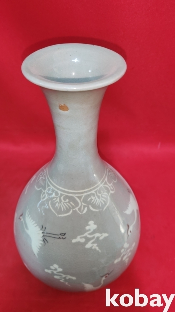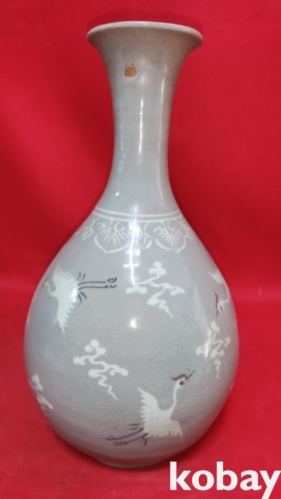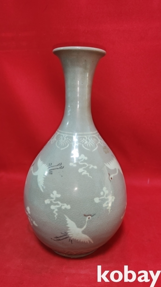 비색청자 ( 翡色 靑磁) 구름과 학(雲鶴)문양 병입니다,