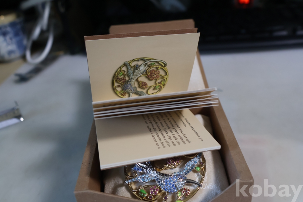 오리지날 상자를 가진 유명 스와로브스키의 브로치 임니다 각국의 언어로 작품 설명의 책자를 가진 화려 섬세한 명품 임니다 사진 참조 하세요