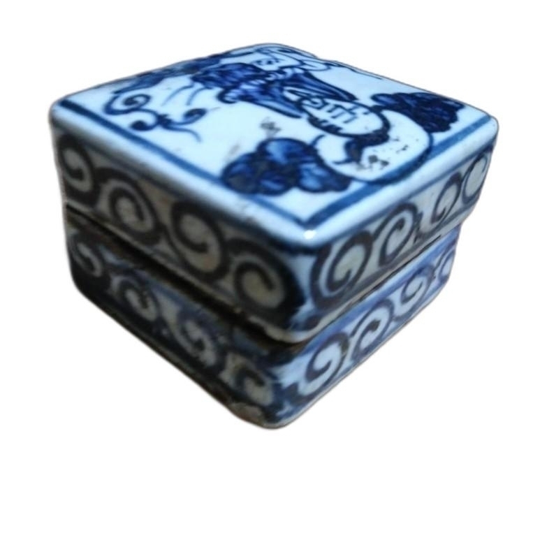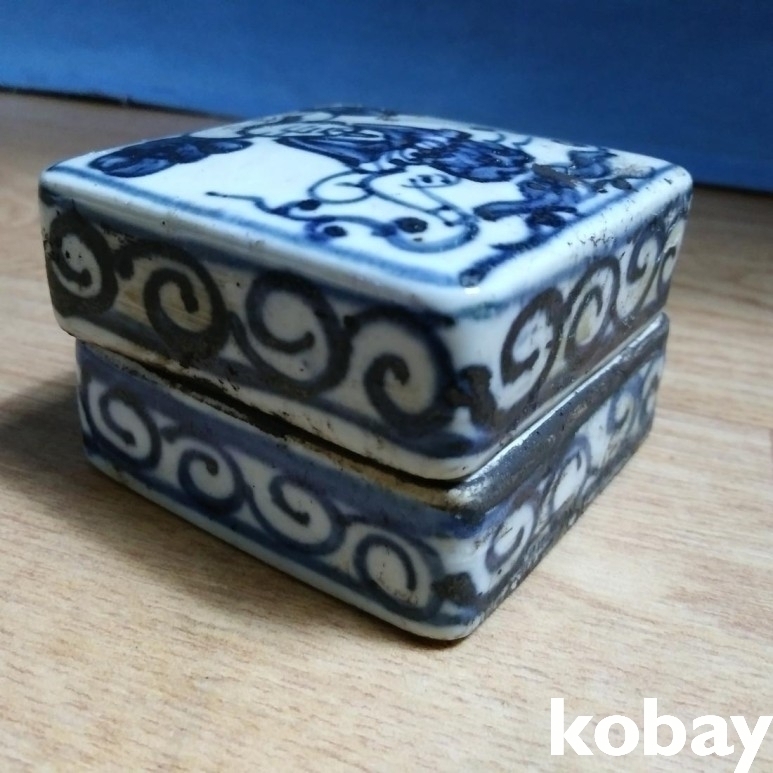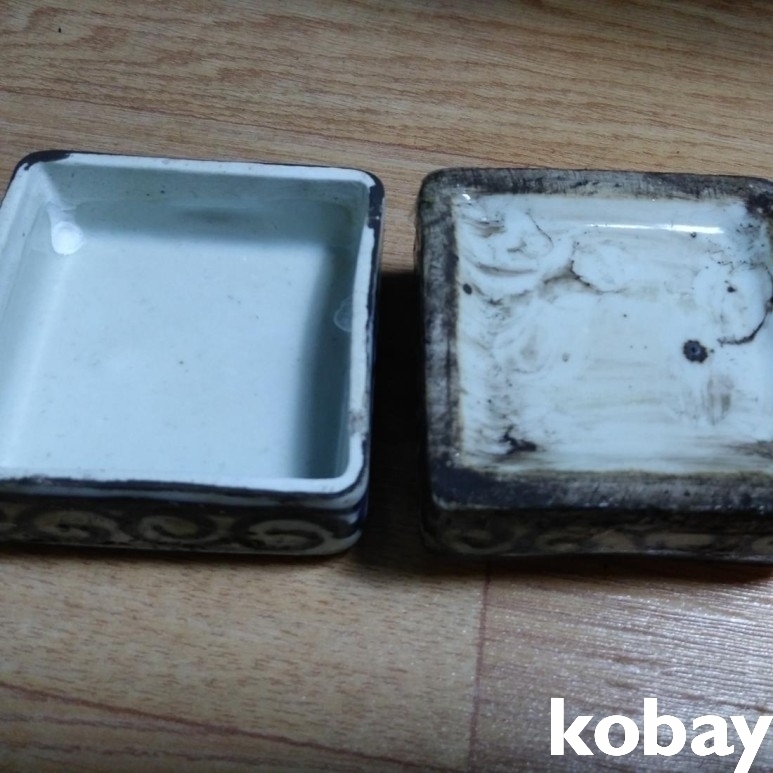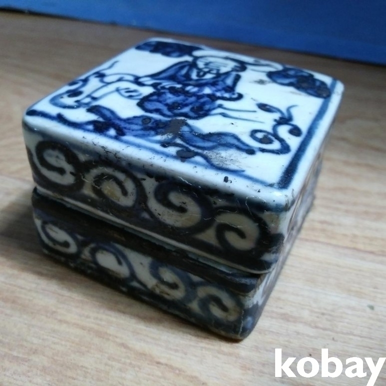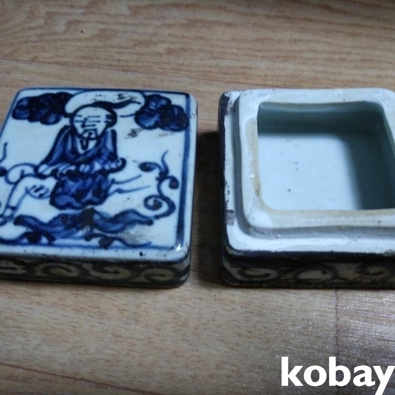 인물 도안이 있는 사각 필새 도자기 입니다.