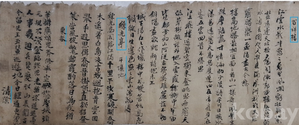 평안도 안주의 백상루(百祥樓), 평양의 연광정(練光亭)에 대한 시문이다.