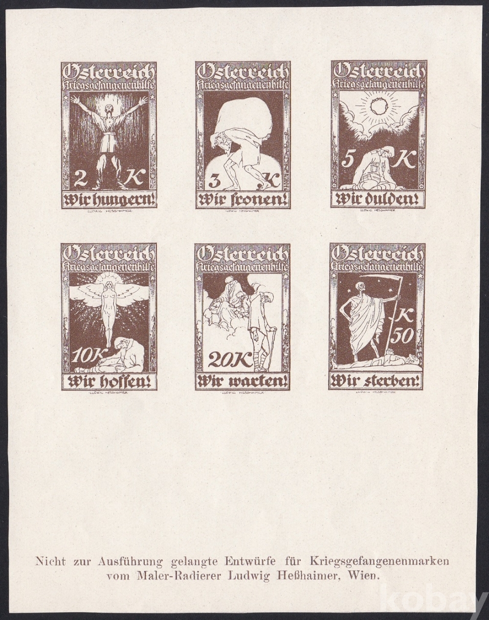 (하늘천) 오스트리아 1918년 제1차 세계 대전, 전쟁 포로 구호, 미채택 브라운 컬러 복합 프루프, 에세이
