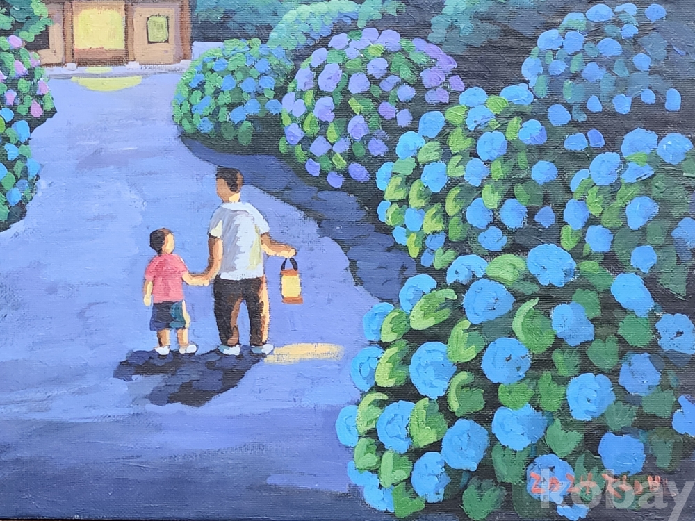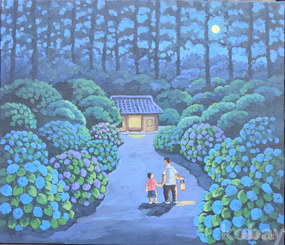 설종보 화백의 밤 수국꽃길 켄퍼스아크릴 10호 작품 입니다