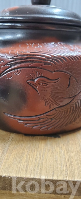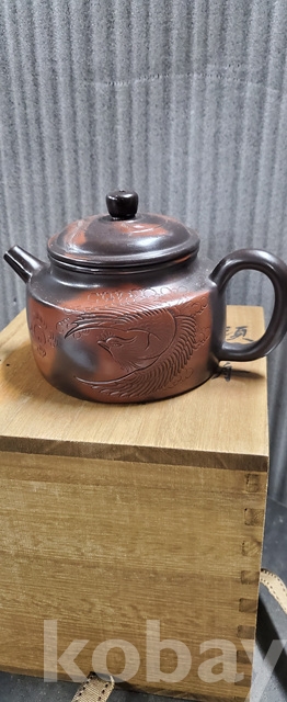 m-3.고급오동박스에담긴중국유명도예가고경주의 독수리문양 자사다관(미감정)