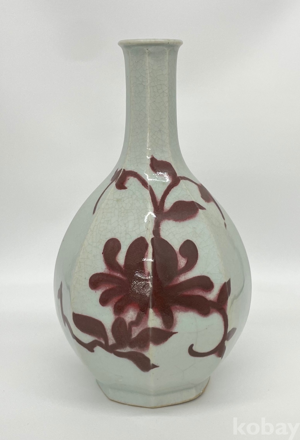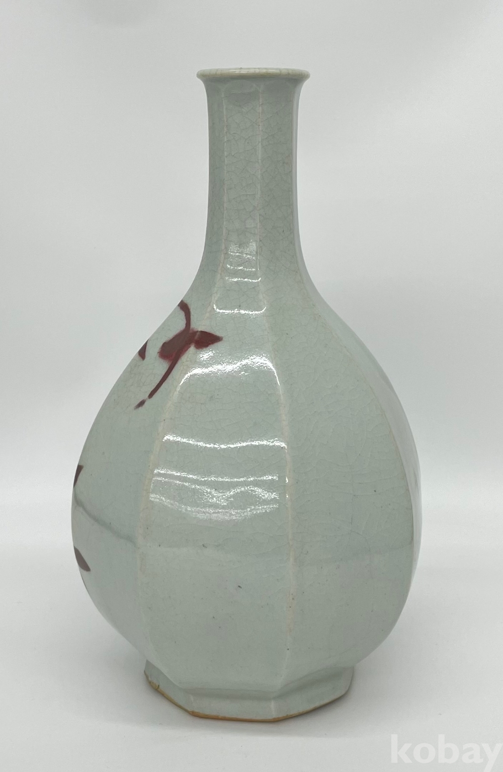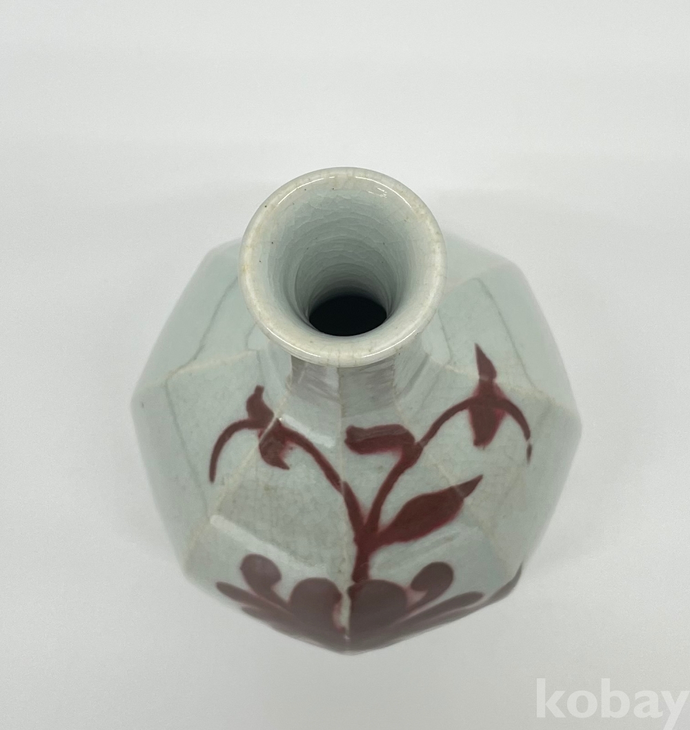호산(呼山) 안동오(安東五) '백자진사초화문각병(白磁辰砂草花文角甁)'