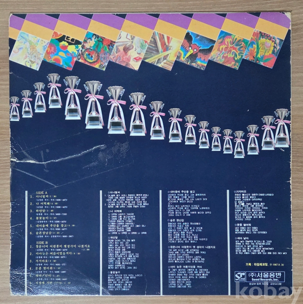 | 자켓상태 | G : 눈에 띄는 손상, 테이프, 필기 존재 | 음반상태 | EX : 재생에 영향 없는 가벼운 기스 존재 | 발매정보 | 알수없음 | 가사지여부 | 무 |