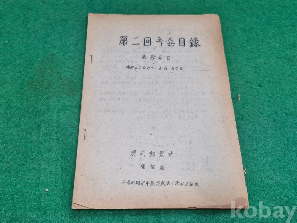 4]. 내용 : 서울의 현대우표사에서 제2회 경매를 하면서 발행한 경매지