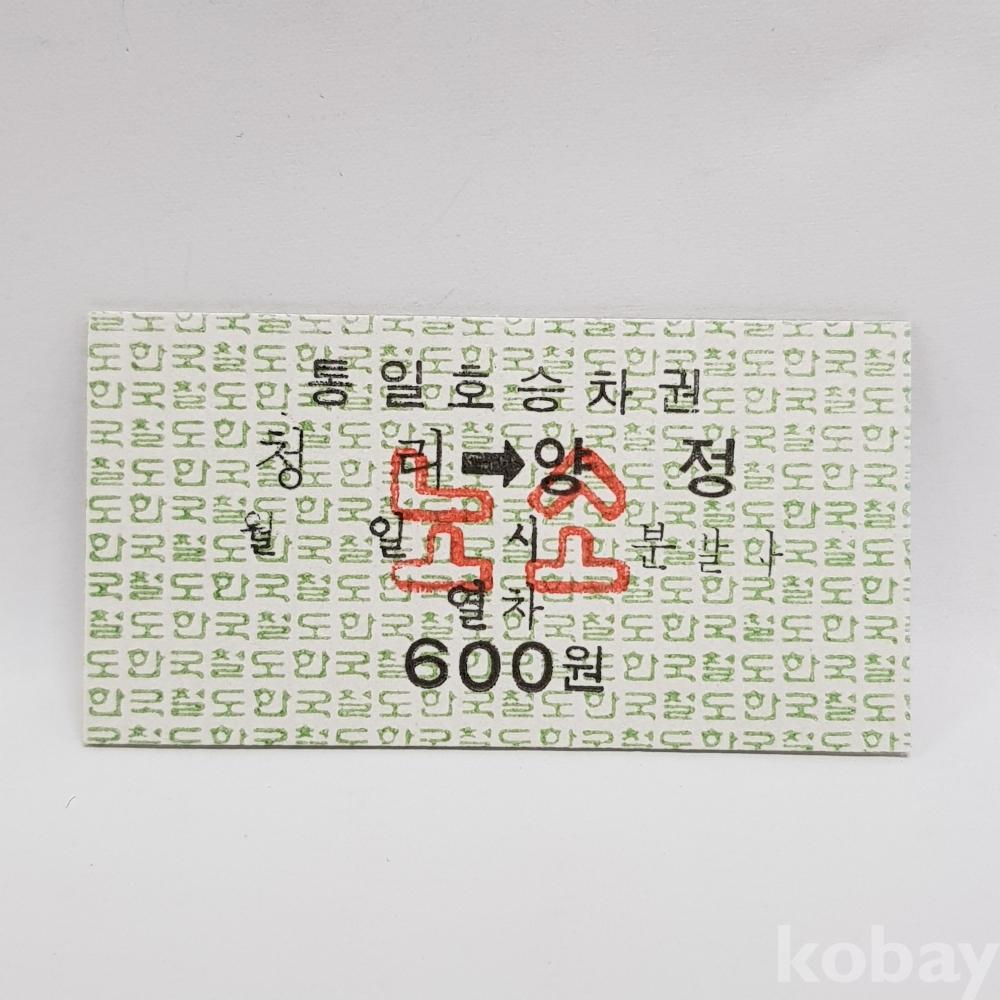 - 청리 ▶ 양정 " 미사용 통일호 승차권 노소 600원