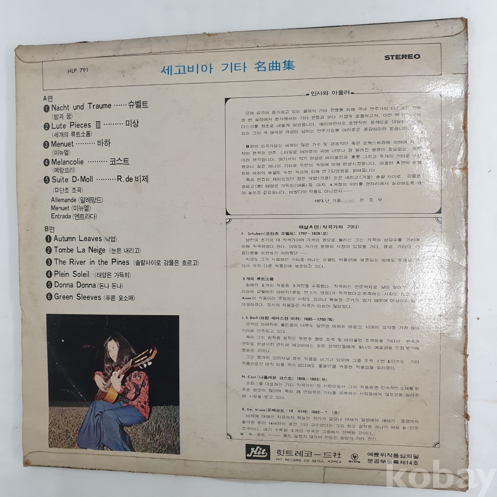 | 자켓상태 | EX : 약간의 마모, 모서리 찢김 존재 | 음반상태 | EX : 재생에 영향 없는 가벼운 기스 존재 | 발매정보 | 알수없음 | 가사지여부 | 무 |