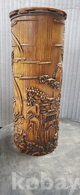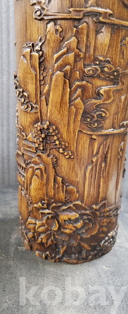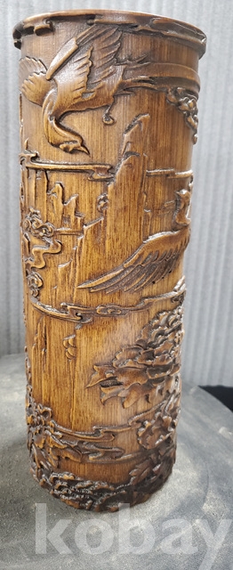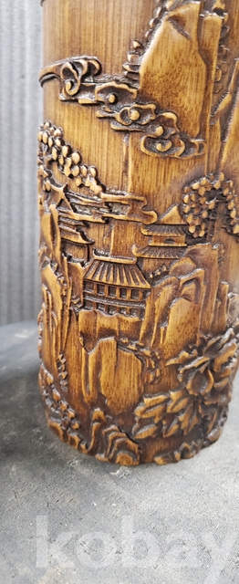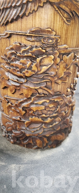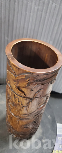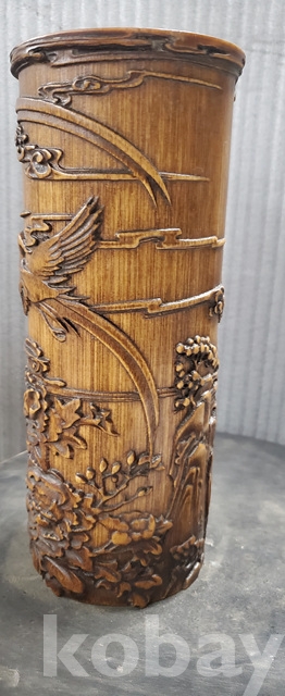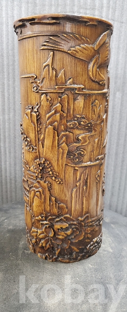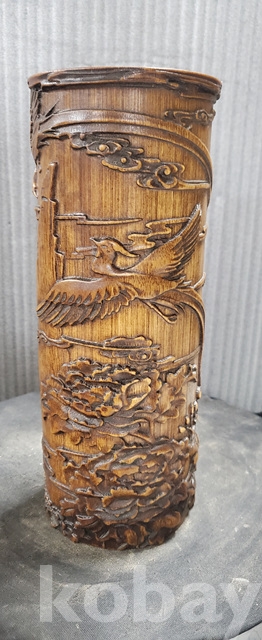 d-145.양각으로조각이잘된 봉황문 대나무 붓통