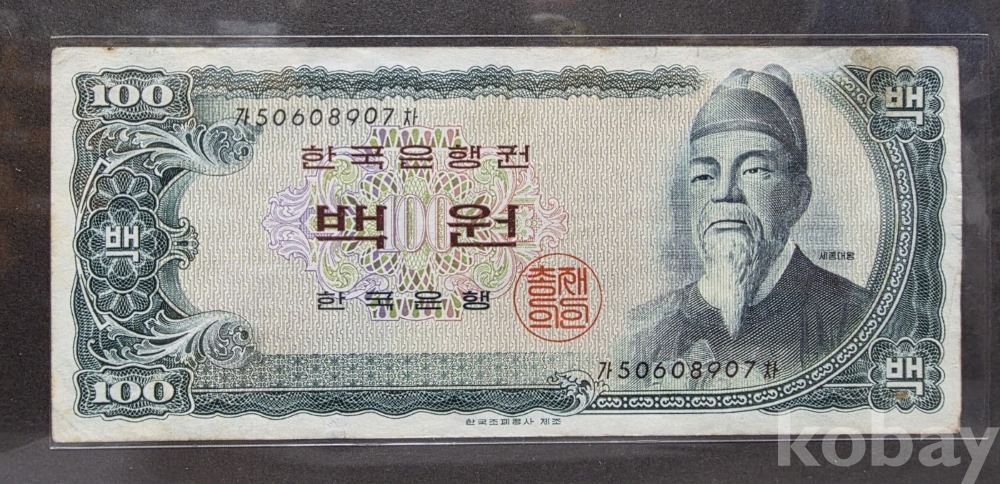 -대한민국 세종 백원 "밤색지" 사용제 지폐이고 완벽하지 않습니다. (일반 적색보다는 밤색지가 더 귀한것입니다.)