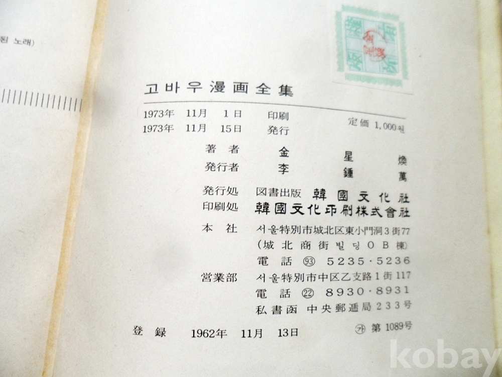 1973년 고바우 만화전집 5책완질 한국문화사 초판
