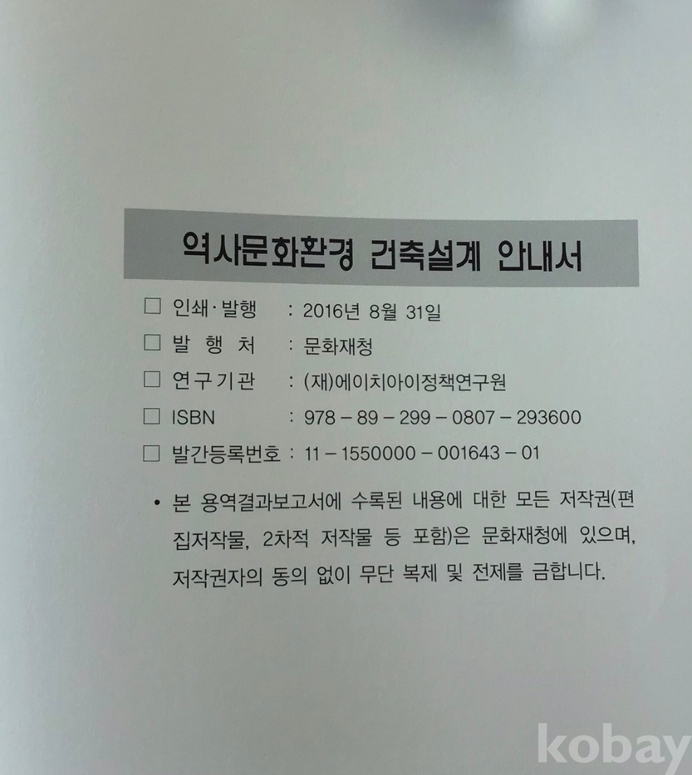 [X53] <<역사문화환경 건축설계 안내서>> / 문화재청 편, 2016년 8월 31일 발행 초판