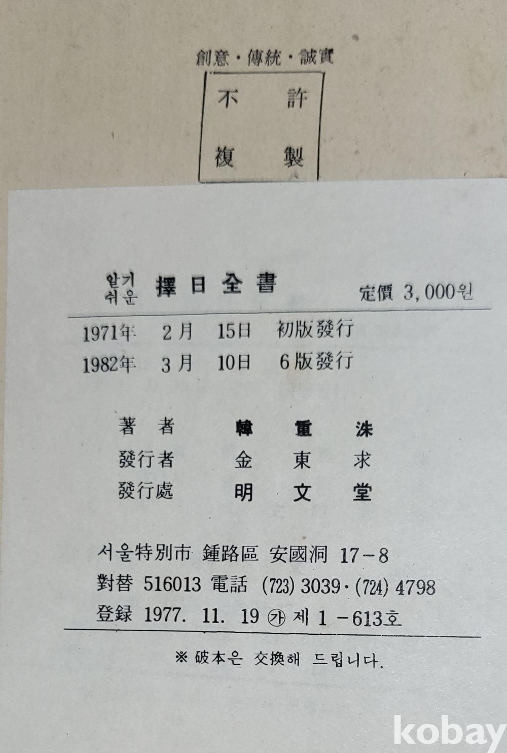 1982년, 발행된 택일전서입니다,