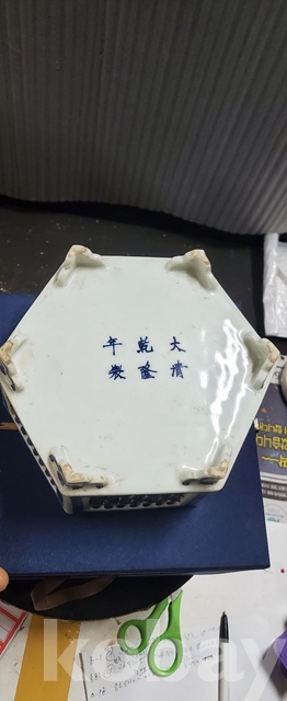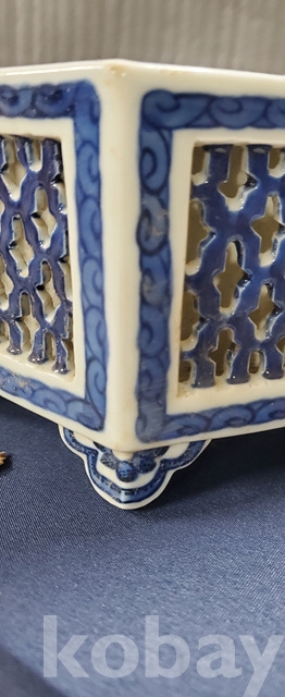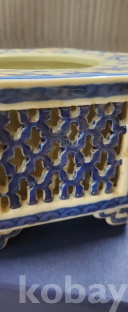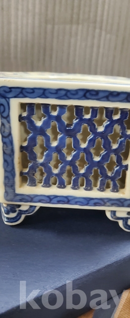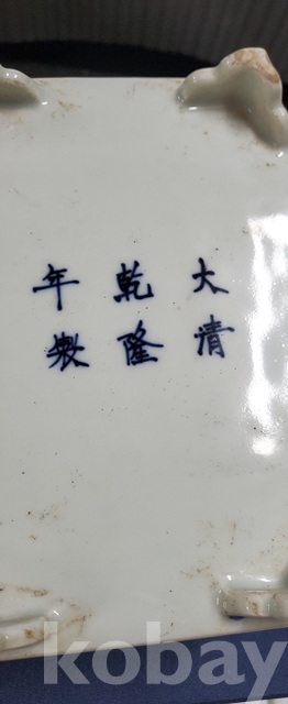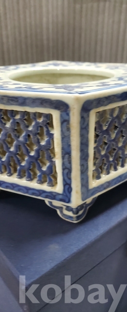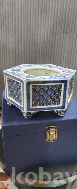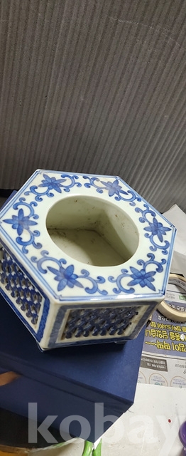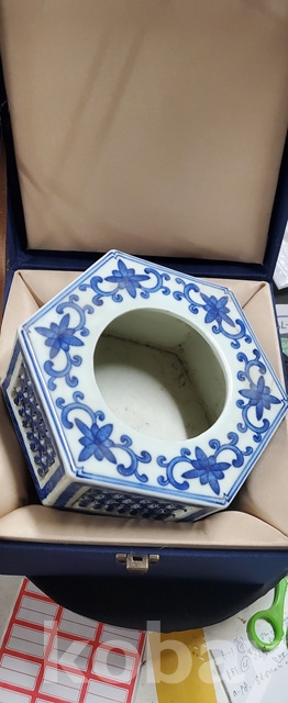 a-98.고급상자에담긴 오래된 건륭년제 육각 당초문 청화백자수반