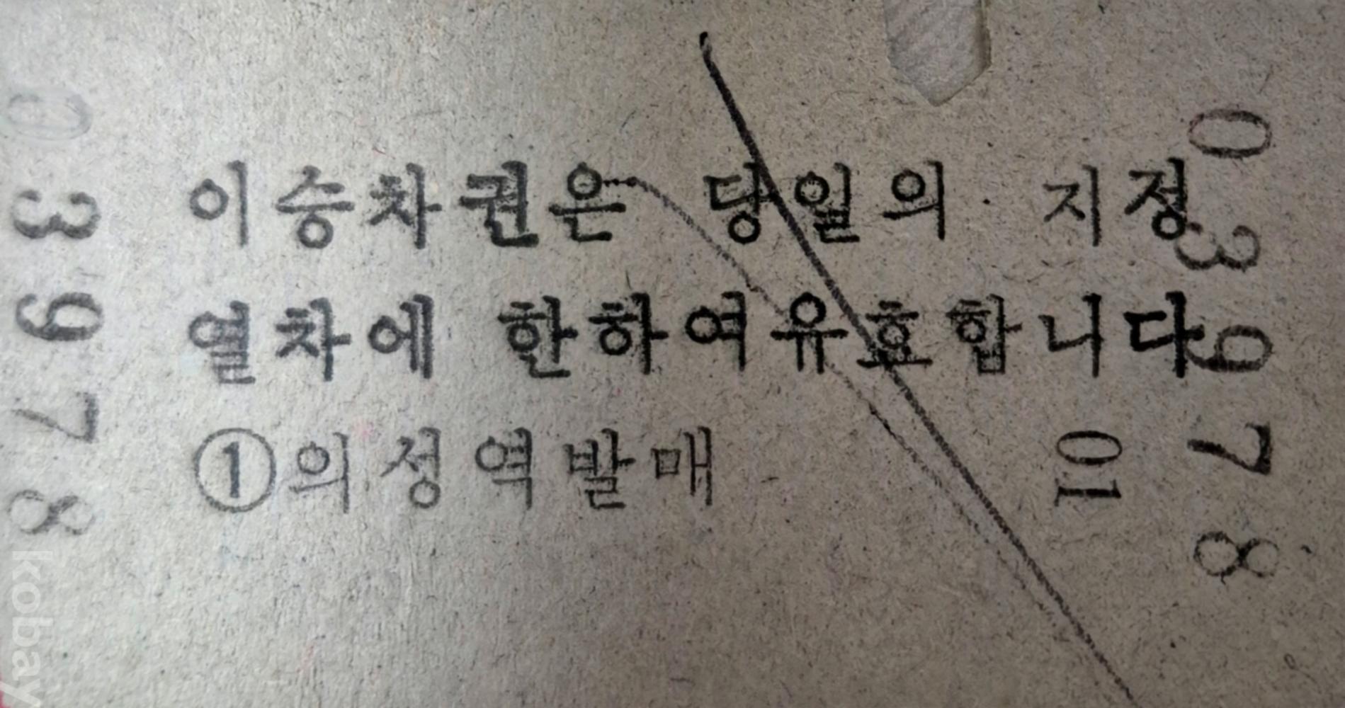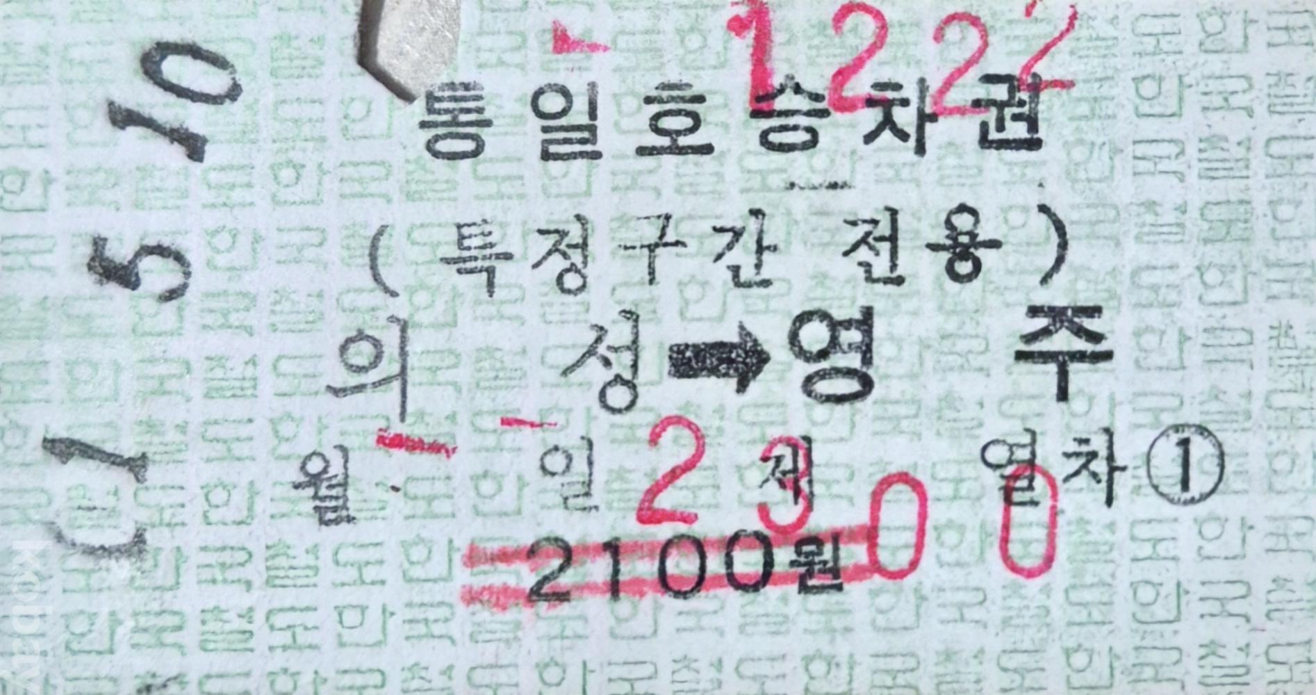 통일호 승차권 의성-영주 특정구간 일반입니다.(사용제)