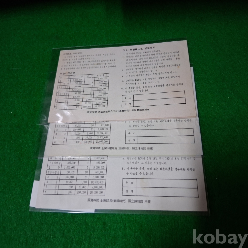 주택복권 120,121,129회 3매 사용제