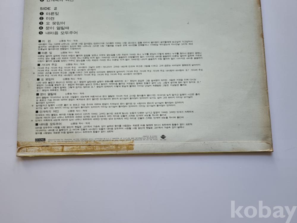 A면(A면 2곡 에 미세한 스크레치 있으나 재생에는 이상이 없습니다 / 사진 여러번 찍었으나 잘 않잡힙니다)
