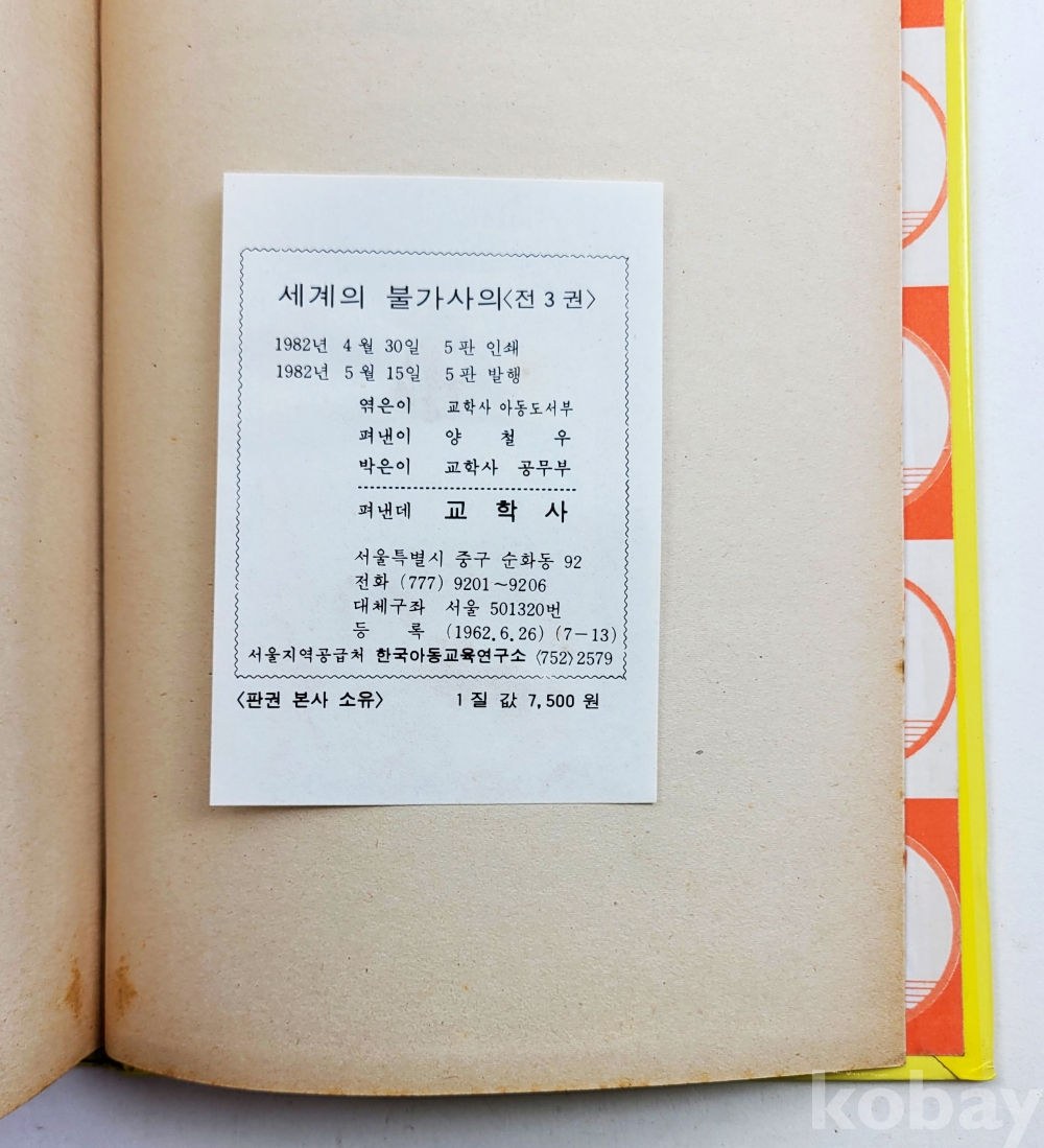 물 품 명 | 세계의 불가사의 (1,2,3) 전3권 세트 / 1982년 / 교학사 |