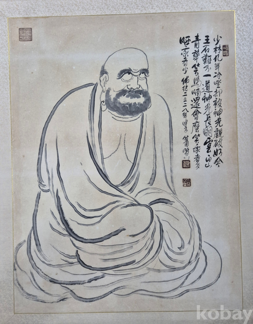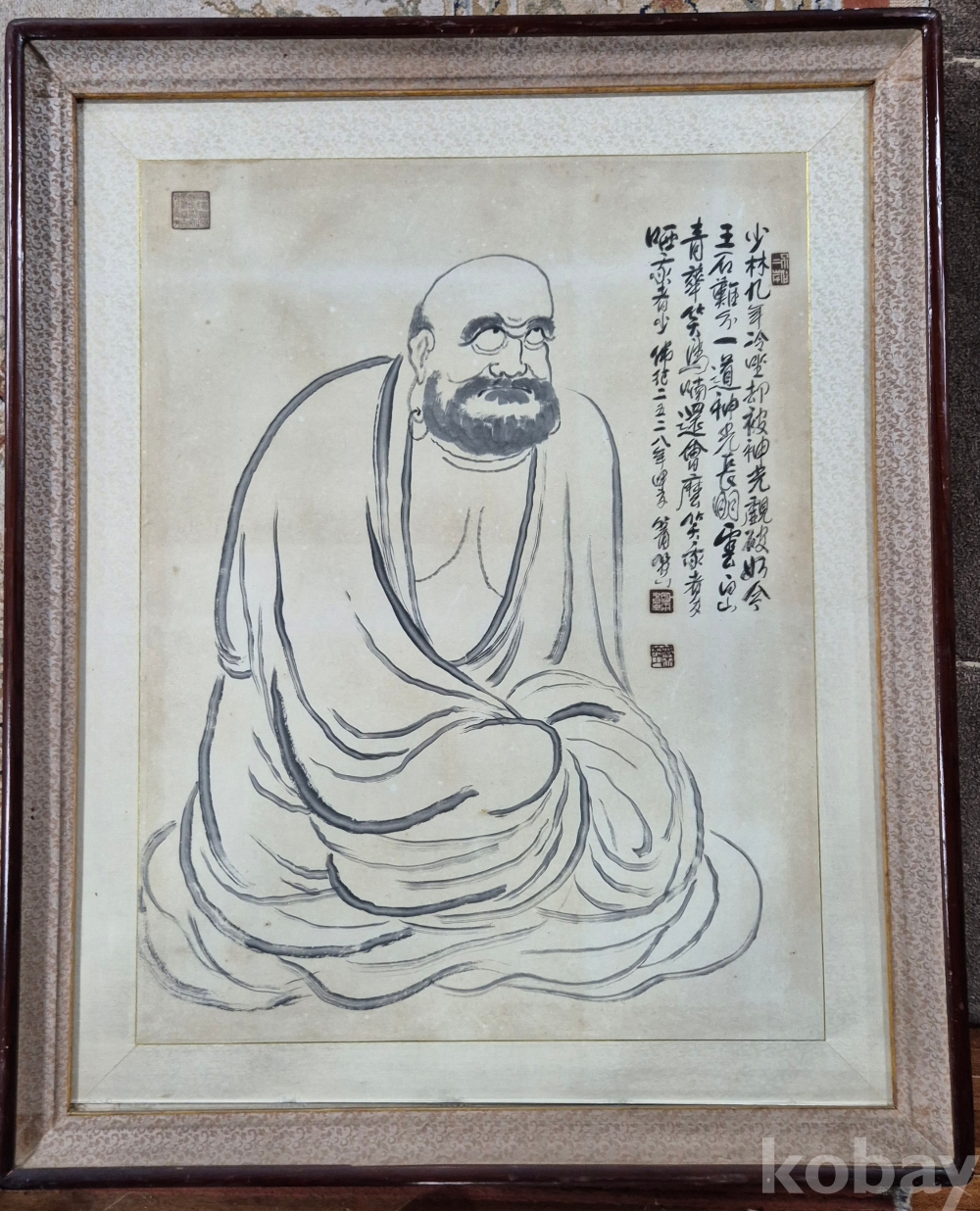 다양한 달마도 그림으로 유명한 소공 이명우'선생밈 명품 달마도'이오니 작품 이미지상 수결 및 낙관'등
