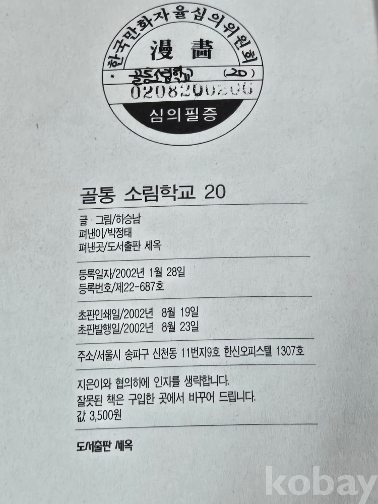 80-90 만화방 == 하승남정통무협코믹 / 하승남 글.그림 == 골통 소림학교 20권 완질