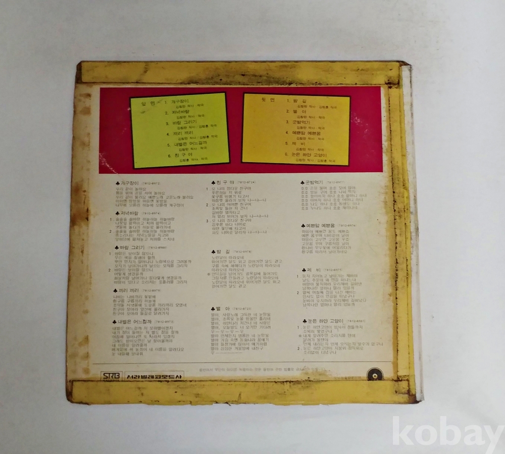 | 자켓상태 | VG : 주름, 접힘, 모서리 찢김 다수 | 음반상태 | EX : 재생에 영향 없는 가벼운 기스 존재 | 발매정보 | 알수없음 | 가사지여부 | 무 |