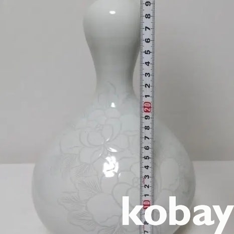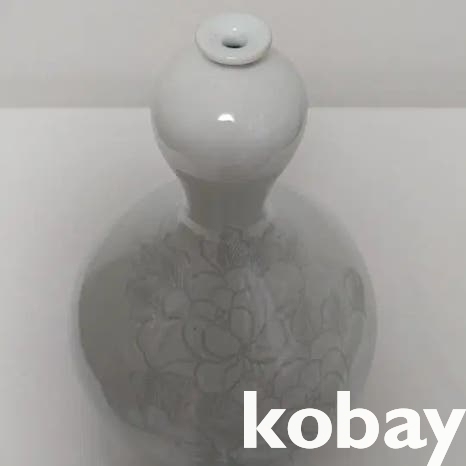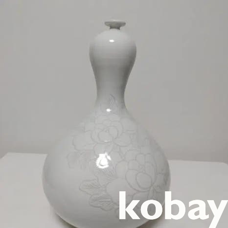 호리병 모양에 꽃 표현이 음각으로 있는 소구 백자 도자기 입니다.