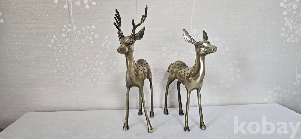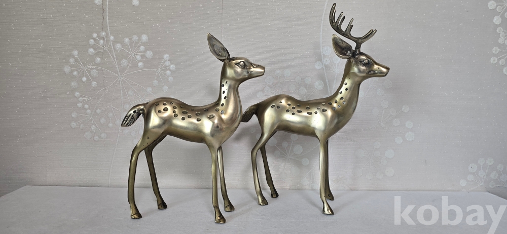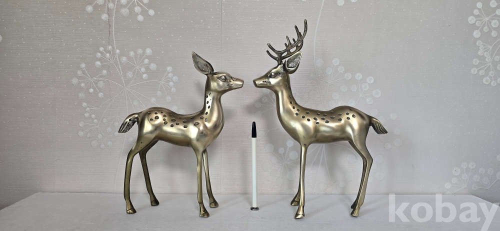 @. 동(브론즈)으로 만든 중형 사슴 부부.