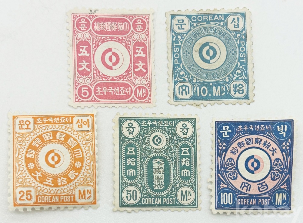 상품 설명 | ‘문위보통우표’는 1884년 11월 18일 우정총국의 업무가 개시되며 탄생한 우리나라 최초의 우표이다. 당시 대일본제국정부대장성인쇄국에 문위우표 5종 인쇄를 의뢰하였으나 5문과 10문만 도착이 되어 사용되었고, 나머지 25문, 50문, 100문은 갑신정변의 실패로 우정총국이 폐쇄될 때까지 도착되지 않아 미발행에 그쳤다. 본 상품은 5문, 10문, 25문, 50문, 100문 총 5종 세트이다. | ||