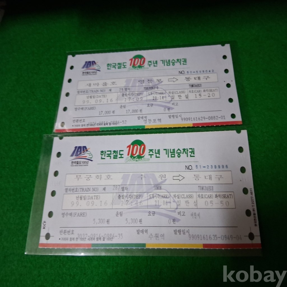한국철도 100주년기념 새마을,무궁화 승차권 2매 사용제