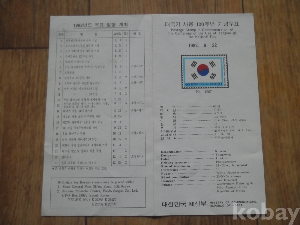 1982년 우표발행계획표 안내장