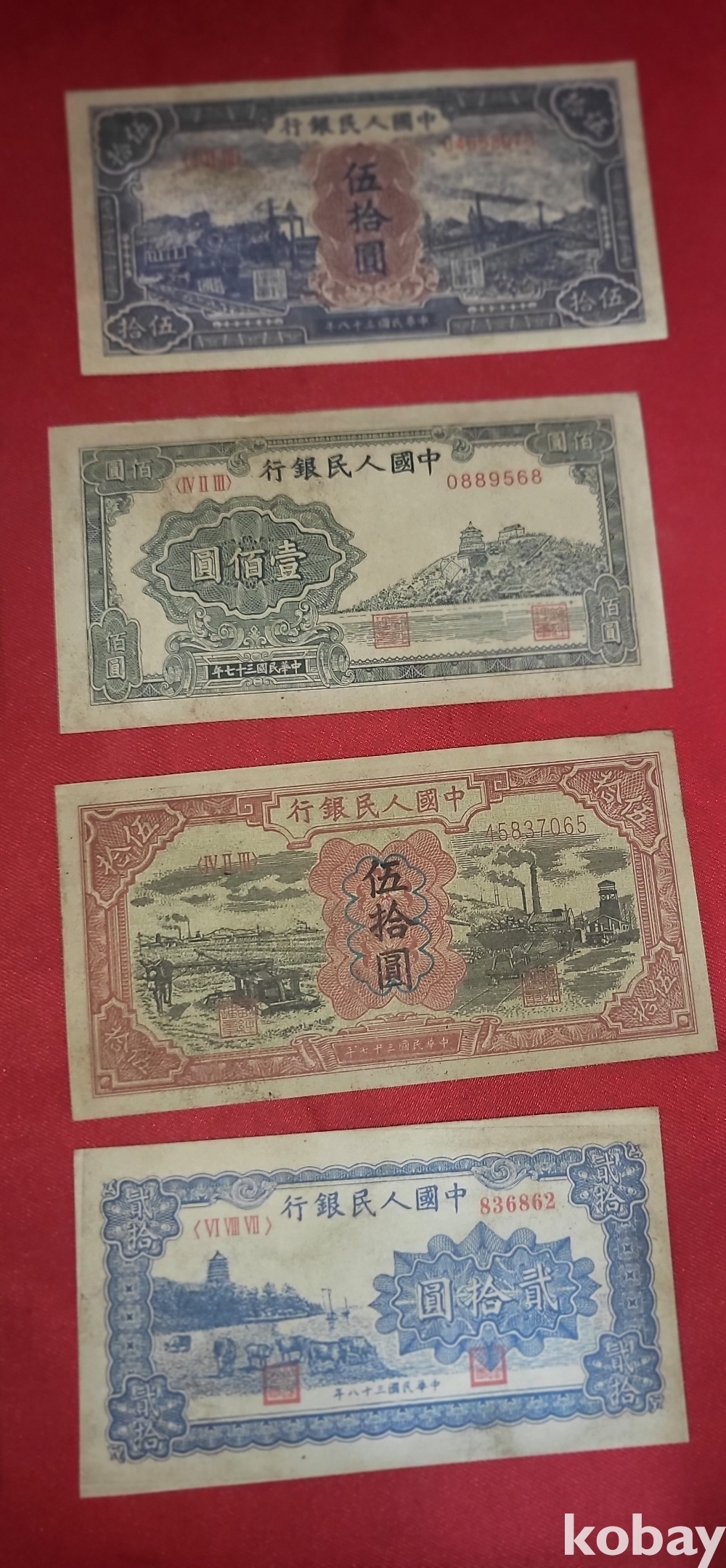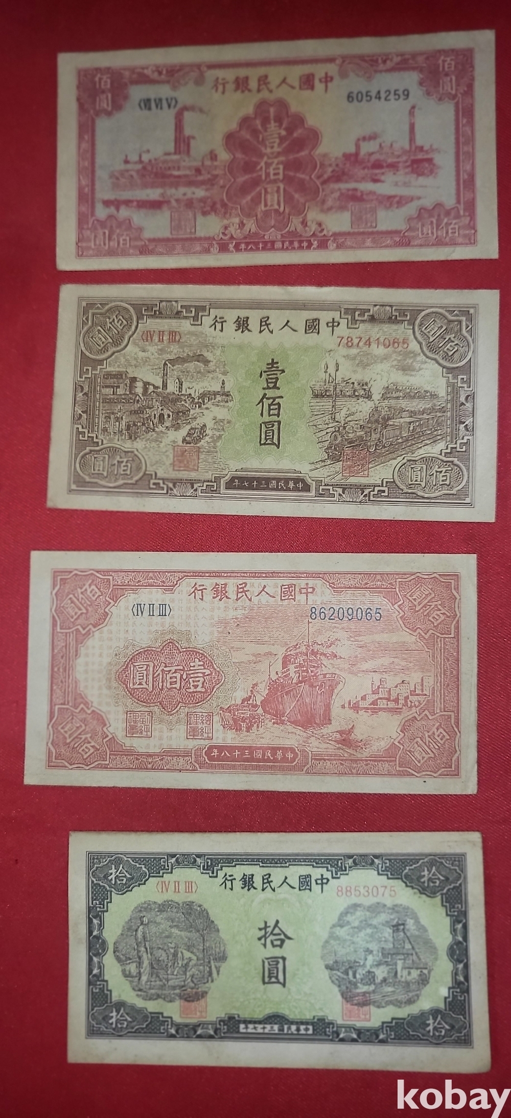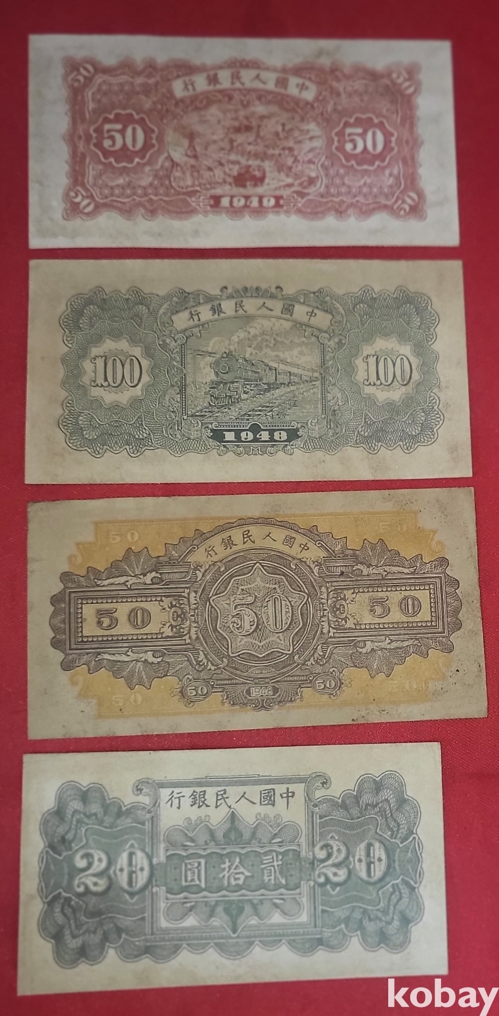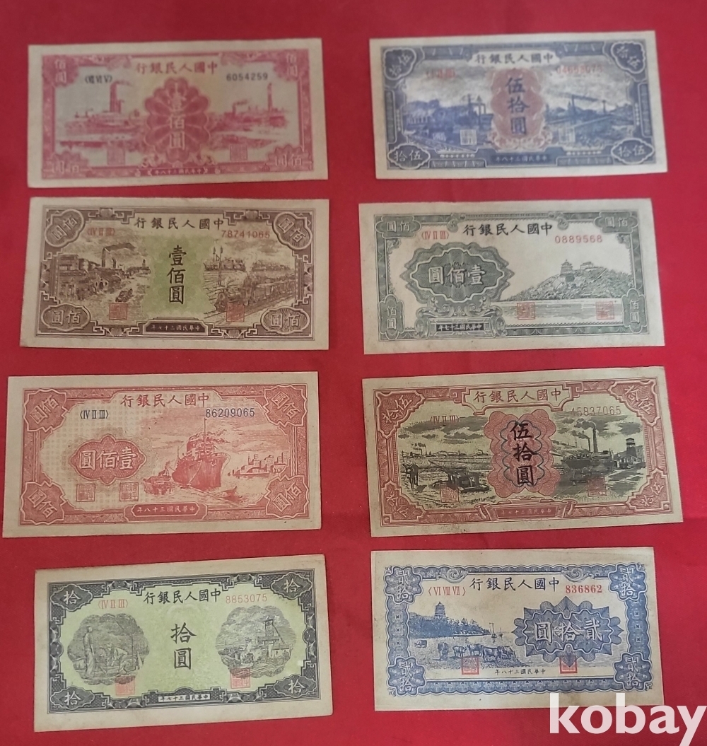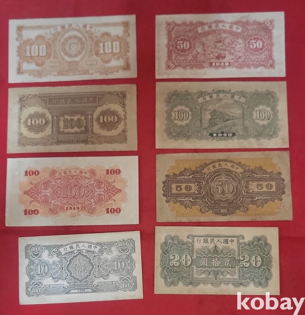 중국 지폐로 보이는 8장입니다,