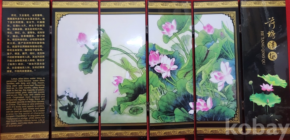 Tㅡ52호 a/c 前 번////// 방고소병풍(仿古小屛風)6곡(谷) 연꽃(蓮花)문양 장식용 미사용 소병풍입니다,