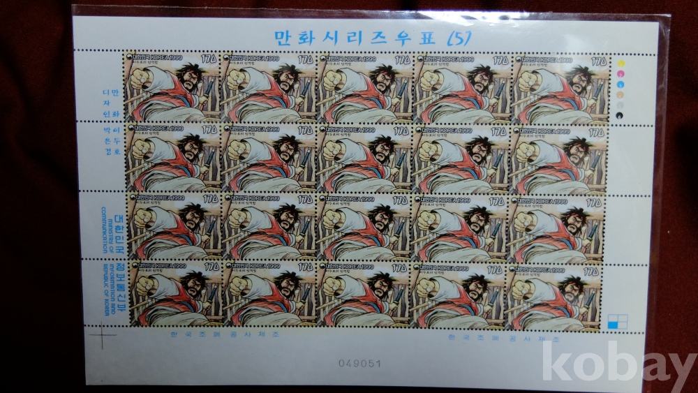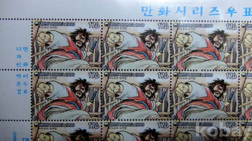 이두호 임꺽정 만화 시리즈 우표 만화우표 한국 유명 만화작품 만화가 전지 우표 고전만화 한국 조폐 공사 제조 디자인 박은경