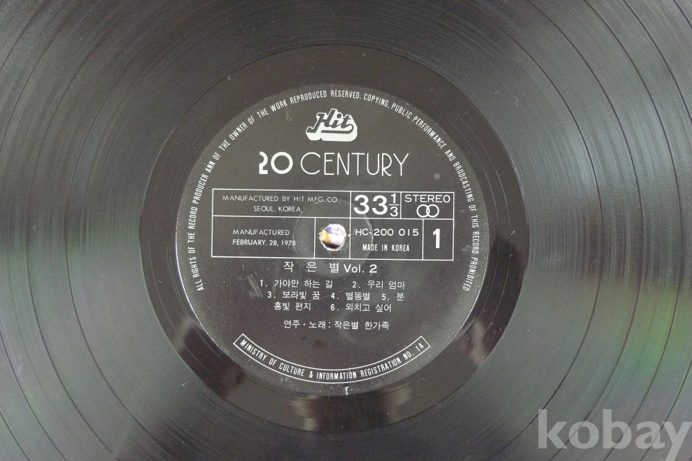 1978년 가수 작은별 한가족 노래 모음 2집 음반 LP