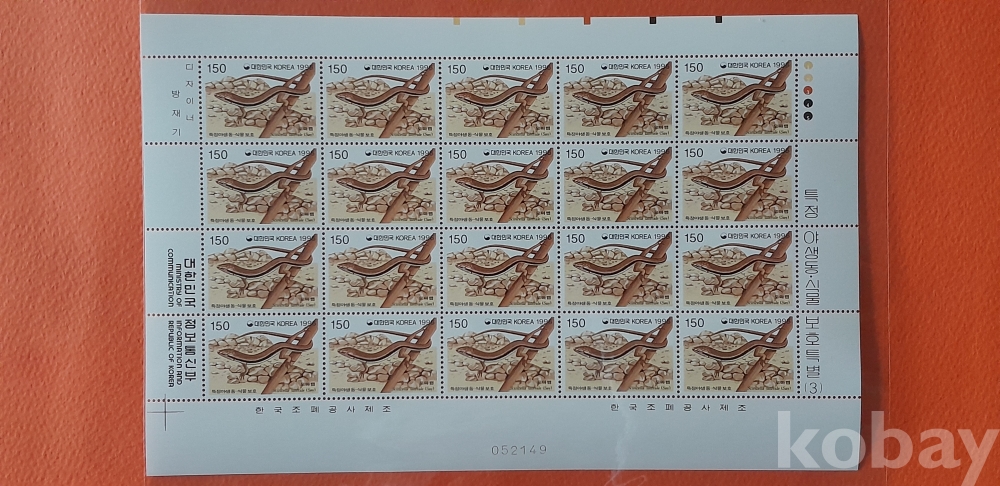 1996년 발행 특정 야생동.식물 보호 특별(제3집) 20매 전지 2종 세트 입니다.