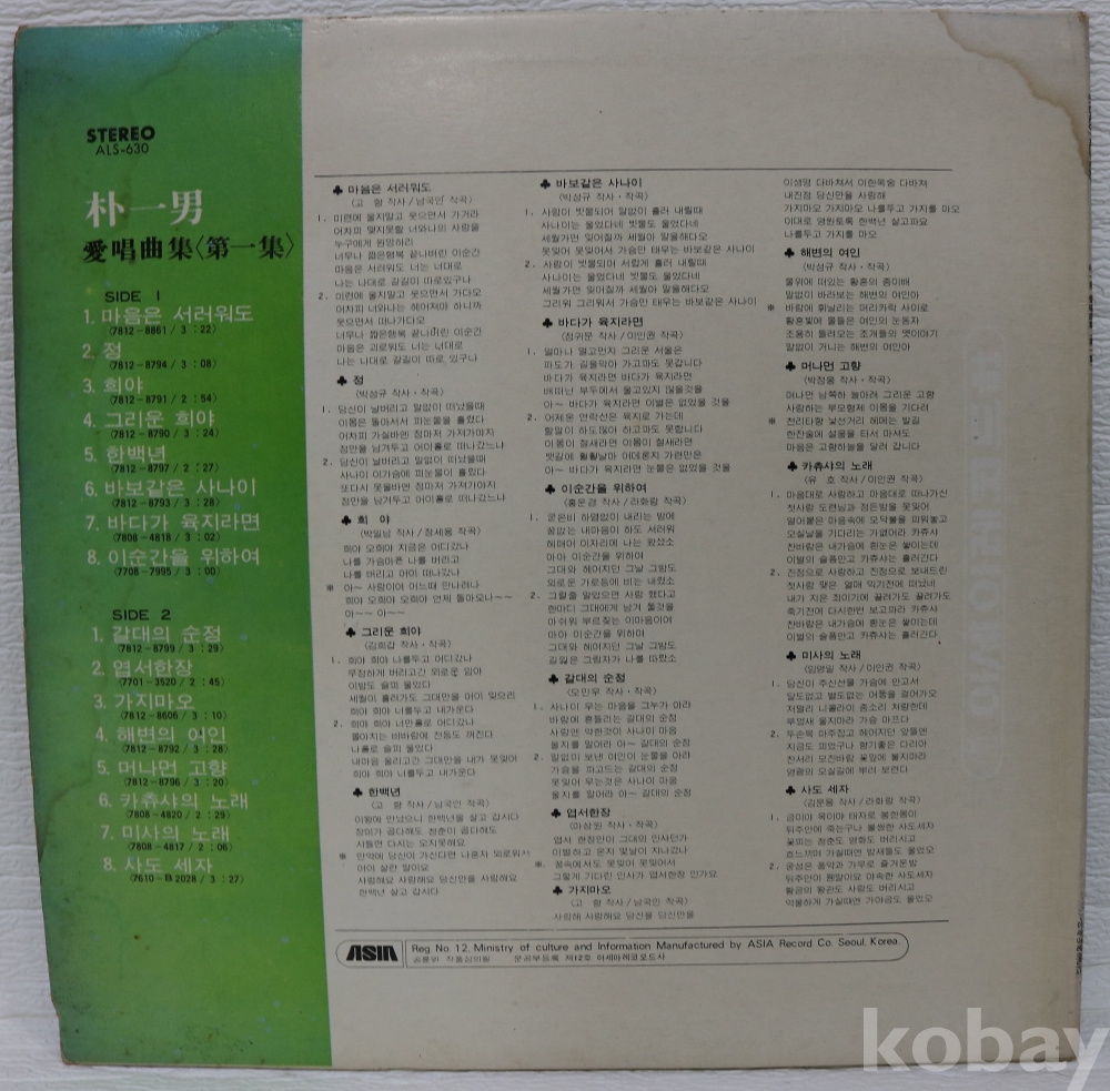| 자켓상태 | EX : 약간의 마모, 모서리 찢김 존재 | 음반상태 | EX : 재생에 영향 없는 가벼운 기스 존재 | 발매정보 | 초반 | 가사지여부 | 유 |