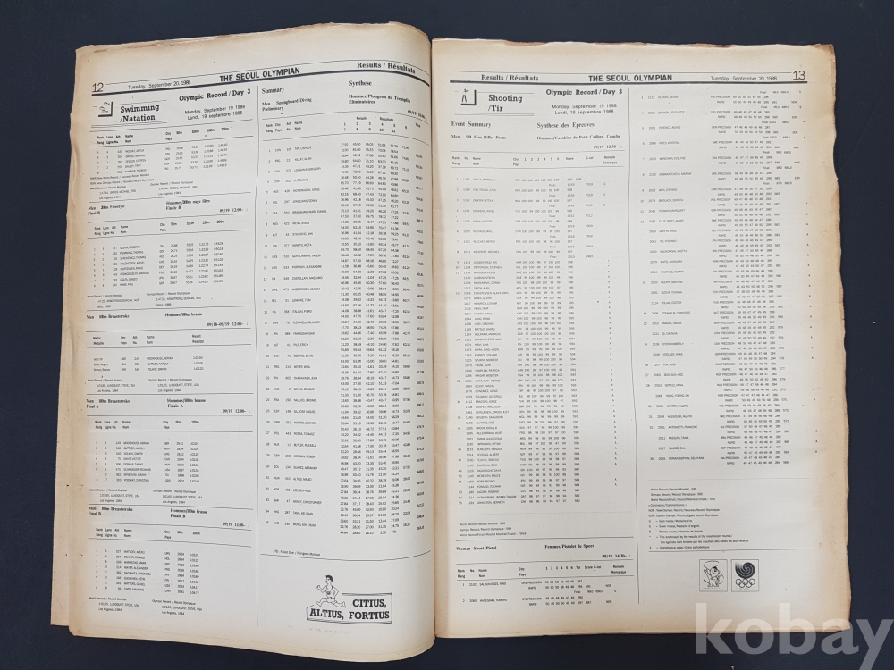**** 서울올림픽(공식발행 신문)/DAY4/88.9.20/64페이지