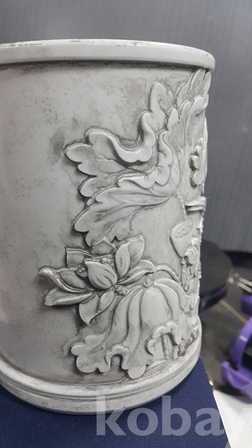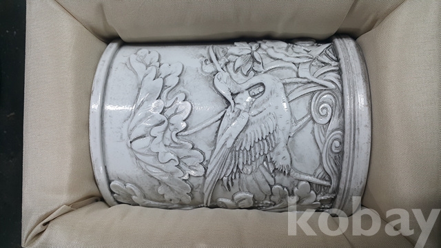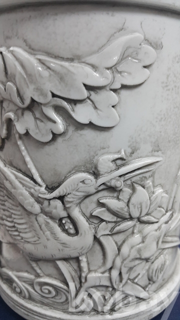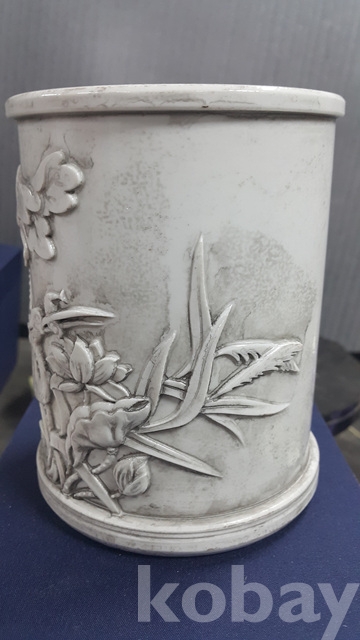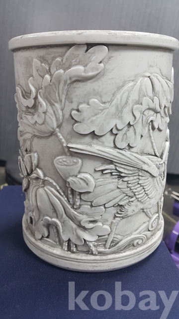 e-100.고급상자에든 오래된 중국조각일인자 왕병영의연하문과두루미 필통