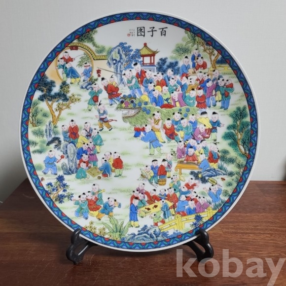 그림이 화려하게 전사된 도자기 접시입니다. 미사용 작품으로 좌대와 함께 제공되며 사이즈와 무게 모두 장식용으로 두고 보시기에 손색없는 작품입니다